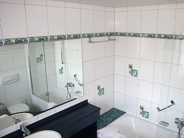 Die Zimmer haben zum größten Teil einen eigenen Balkon mit herrlicher See- und Bergsicht.